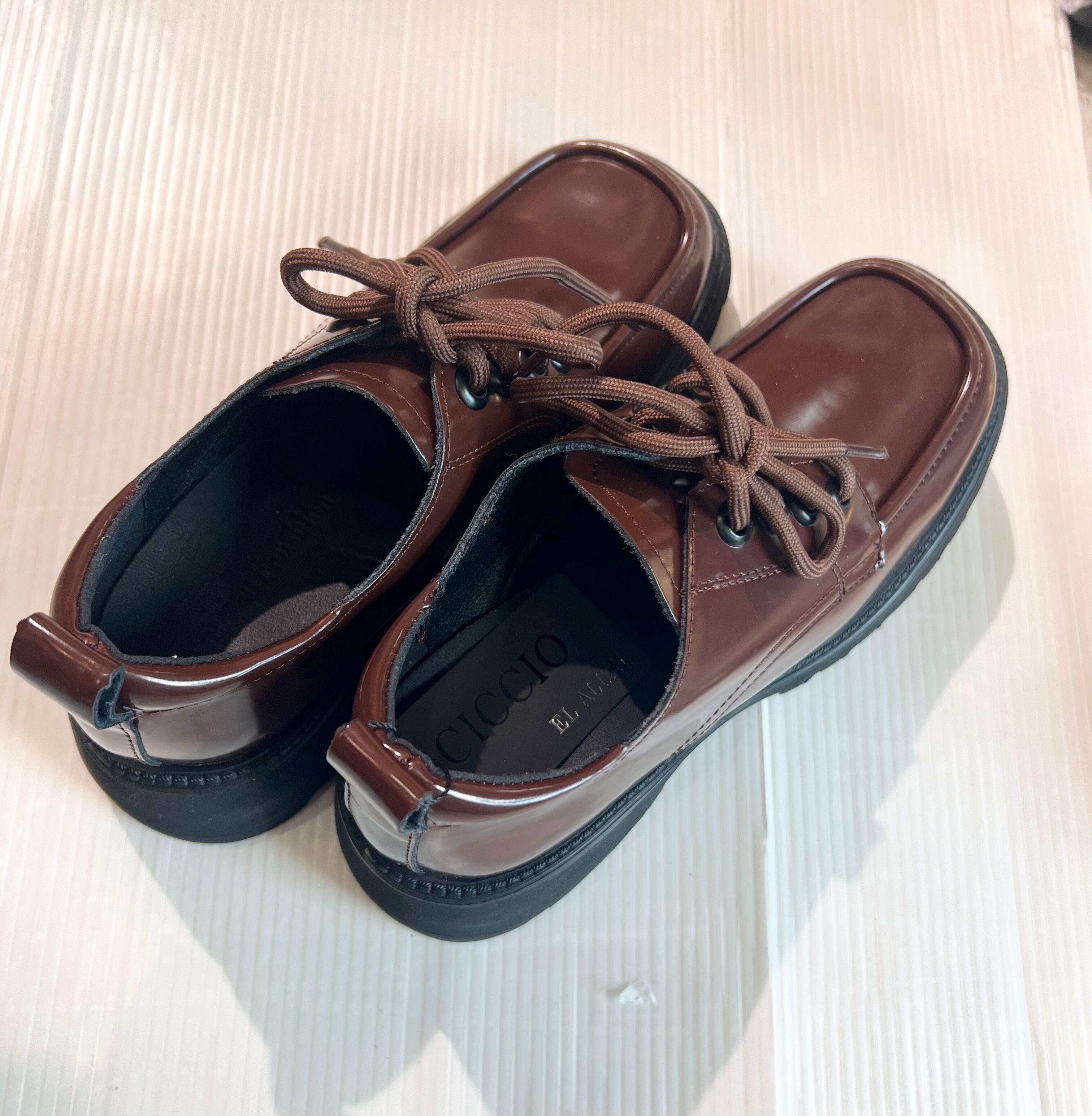 ブラウン ヒール ローファー